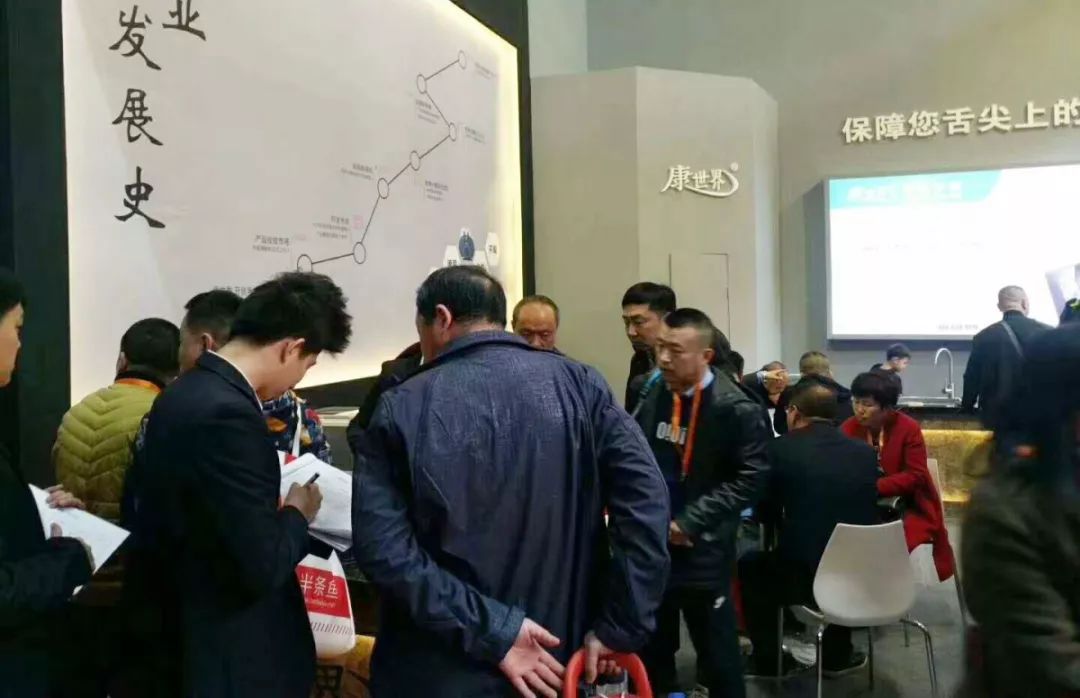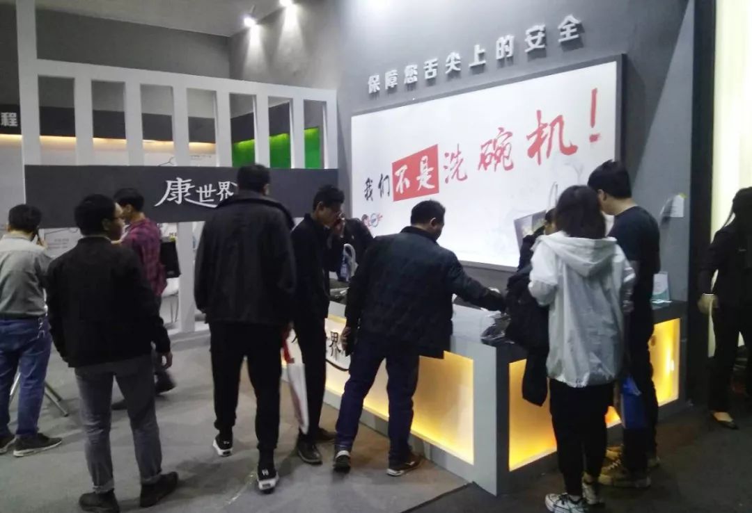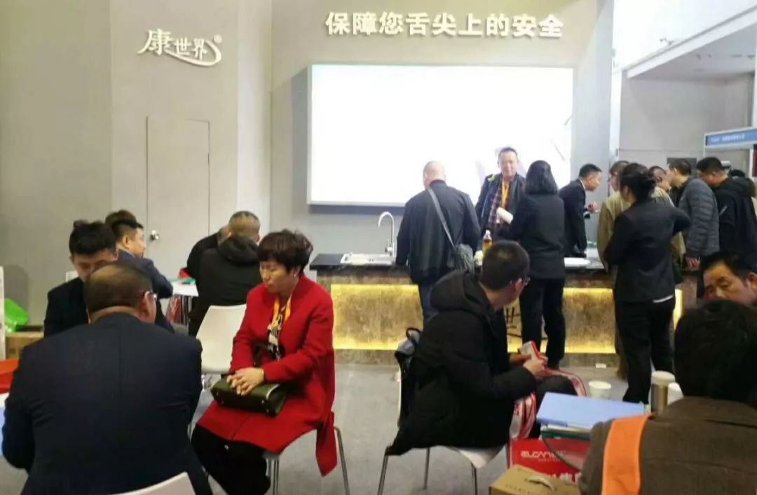 康世界展位熱火朝天,著裝整齊的工作人員為參展者認真細心的介紹產品,洽談區人氣爆棚,來自全國各地的經銷商看中康世界智能水槽震撼的效果和出眾的品質,經過一番咨詢和了解,紛紛達成合作意向。